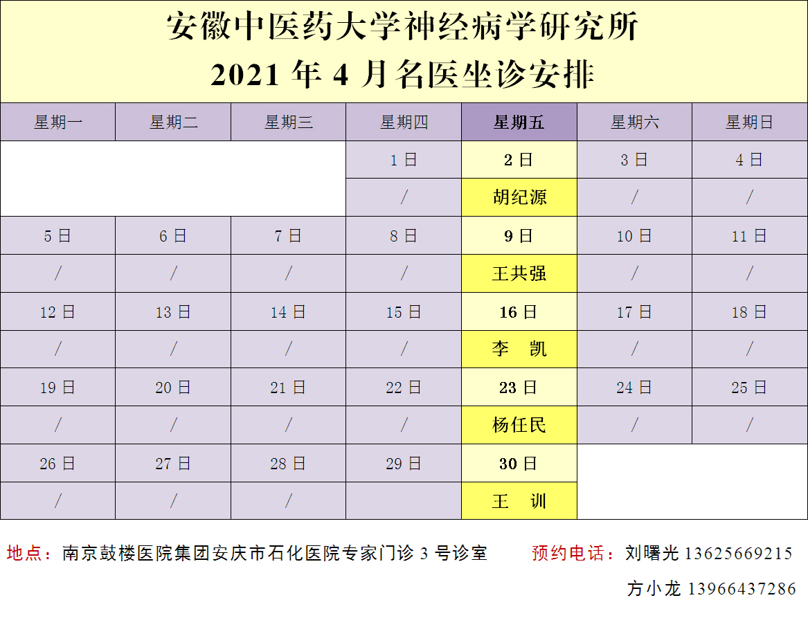 2021年4月,杨任民教授、胡纪源教授、王共强教授、李凯教授和王训教授都将到石化医院坐诊,机会难得,不容错过!
