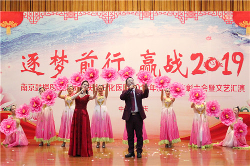 豪情欢歌辞旧岁,喜气开篇迎新年,一曲《相亲相爱》拉开文艺汇演序幕。《中国味道》、《白衣风采》、《爱我石医》三大篇章19个节目轮番登场,昂扬的歌声,唱出了石医人的斗志豪情;逗趣的小品,演出了医护的酸甜苦辣;曼妙的舞姿,舞出了白衣天使的活泼灵动;铿锵的朗诵,诵出了医者的仁心仁术。医联体“新成员”大观院区带来养身气功《八段锦》,真功夫表演赢得现场掌声不断。“石化医院不一般,南联北移扩市场。三级医院齐心创,保障健康民称赞。”七仙女婉转悠扬的黄梅调《黄梅新颂》,赞遍了医院改制来的每一次巨变,见证了每一个荣耀的里程碑时刻,为迎春文艺汇演画下圆满的句点。相聚的美好时光总是短暂的,一家人相约来年再见,让我们期待2019医院更美好。